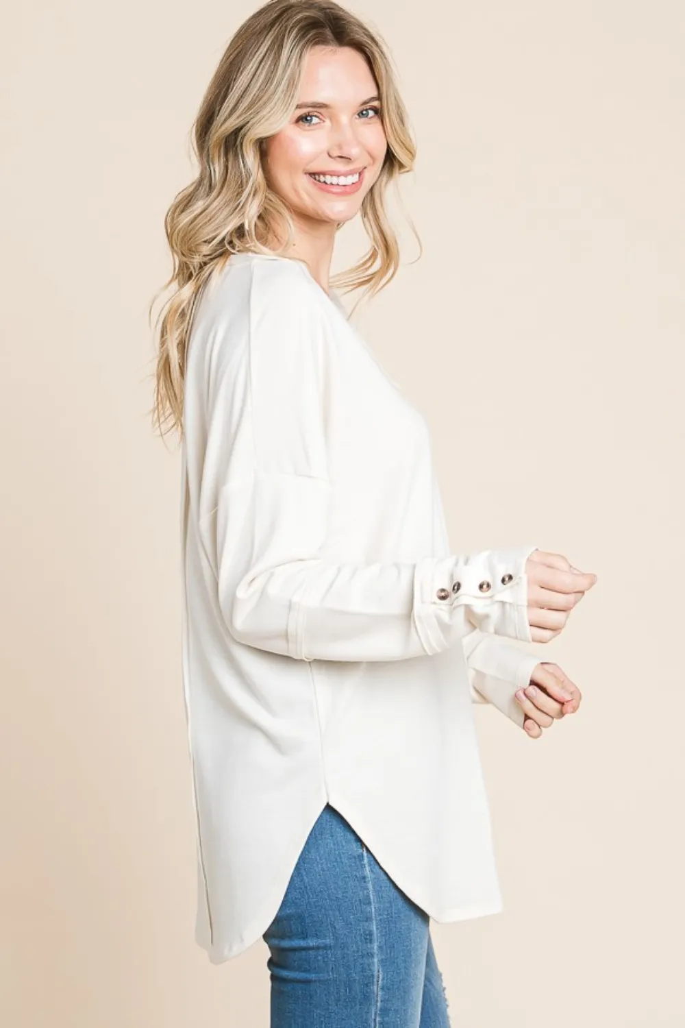 Culture Code Full Size V-Neck Dropped Shoulder Blouse