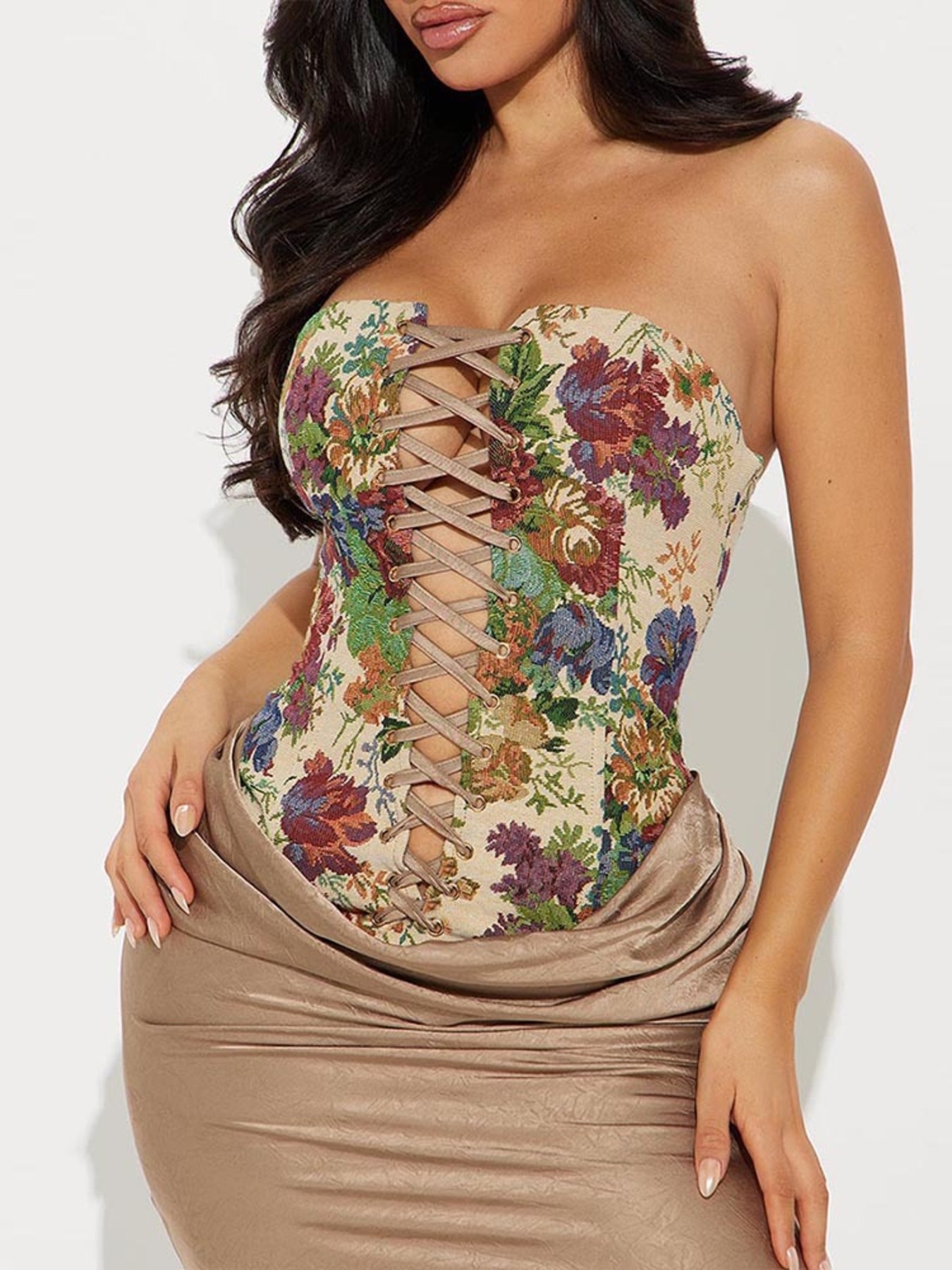 Floral Print Lace Up Tube Top