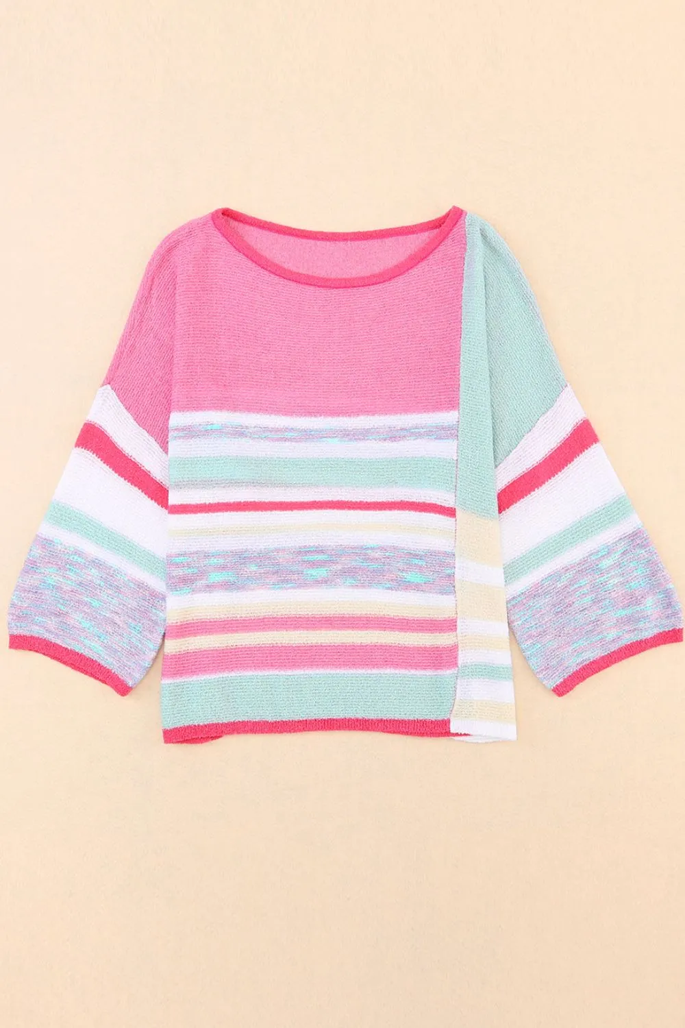Contrast Round Neck Three-Quarter Sleeve Knit Top