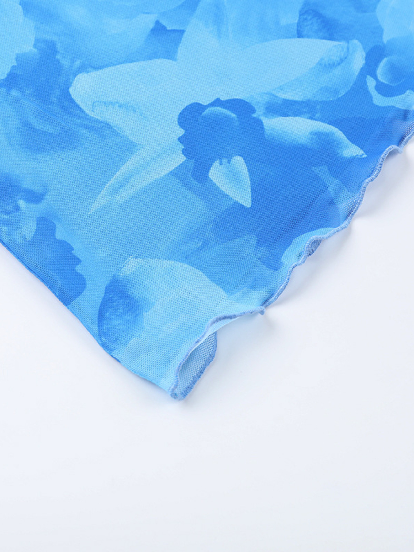 Floral Print Spaghetti Strap Mesh Mini Dress