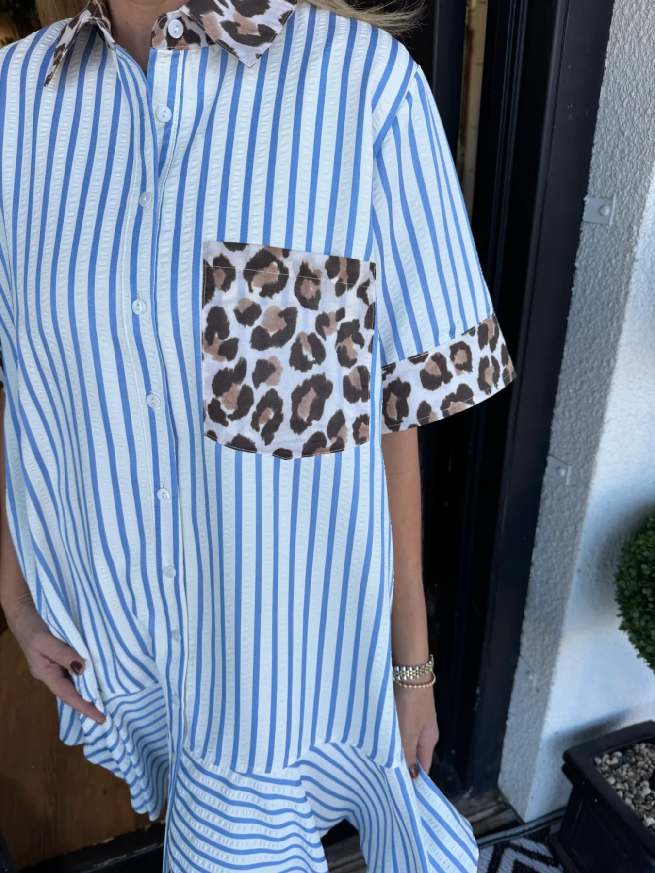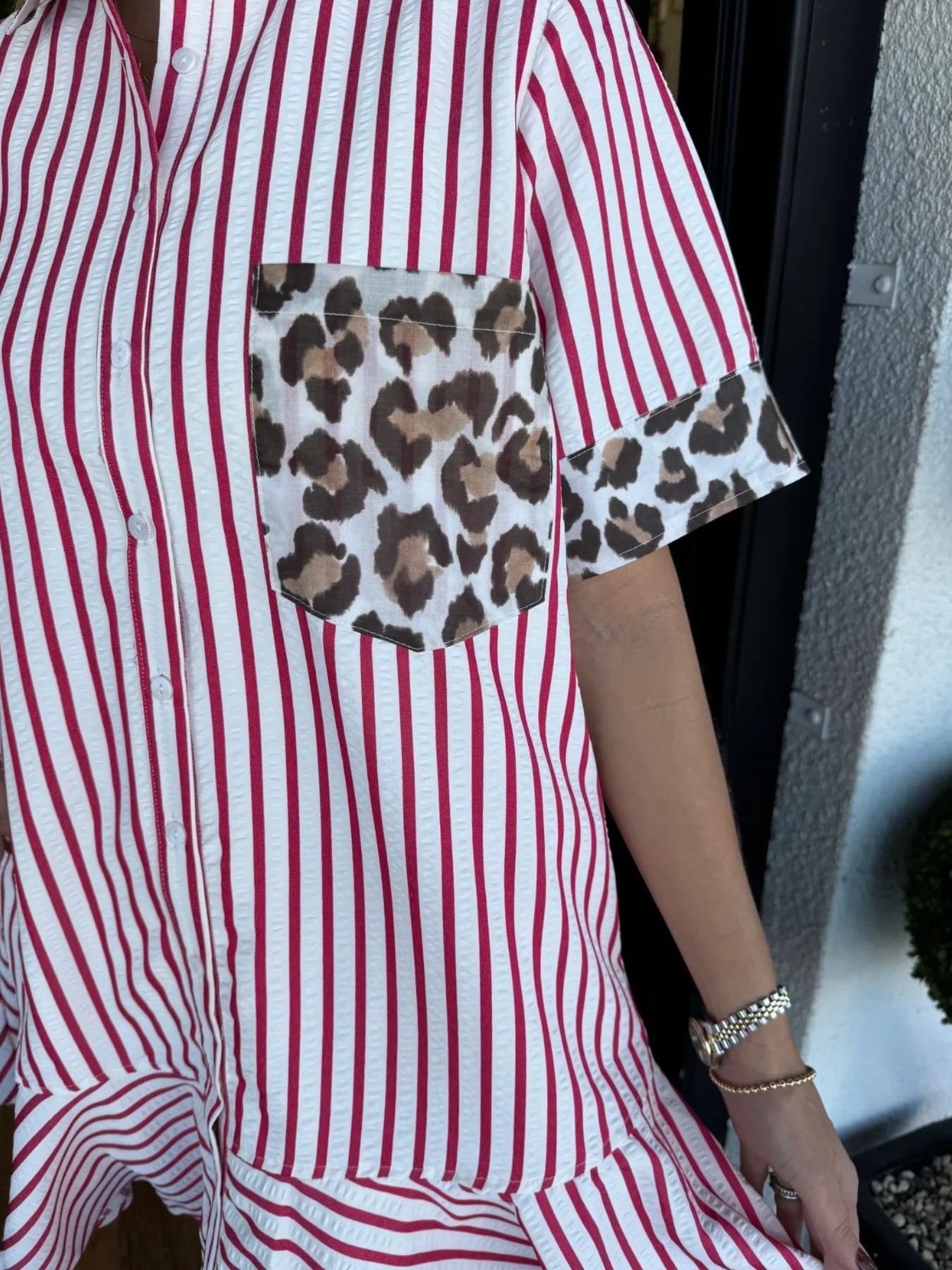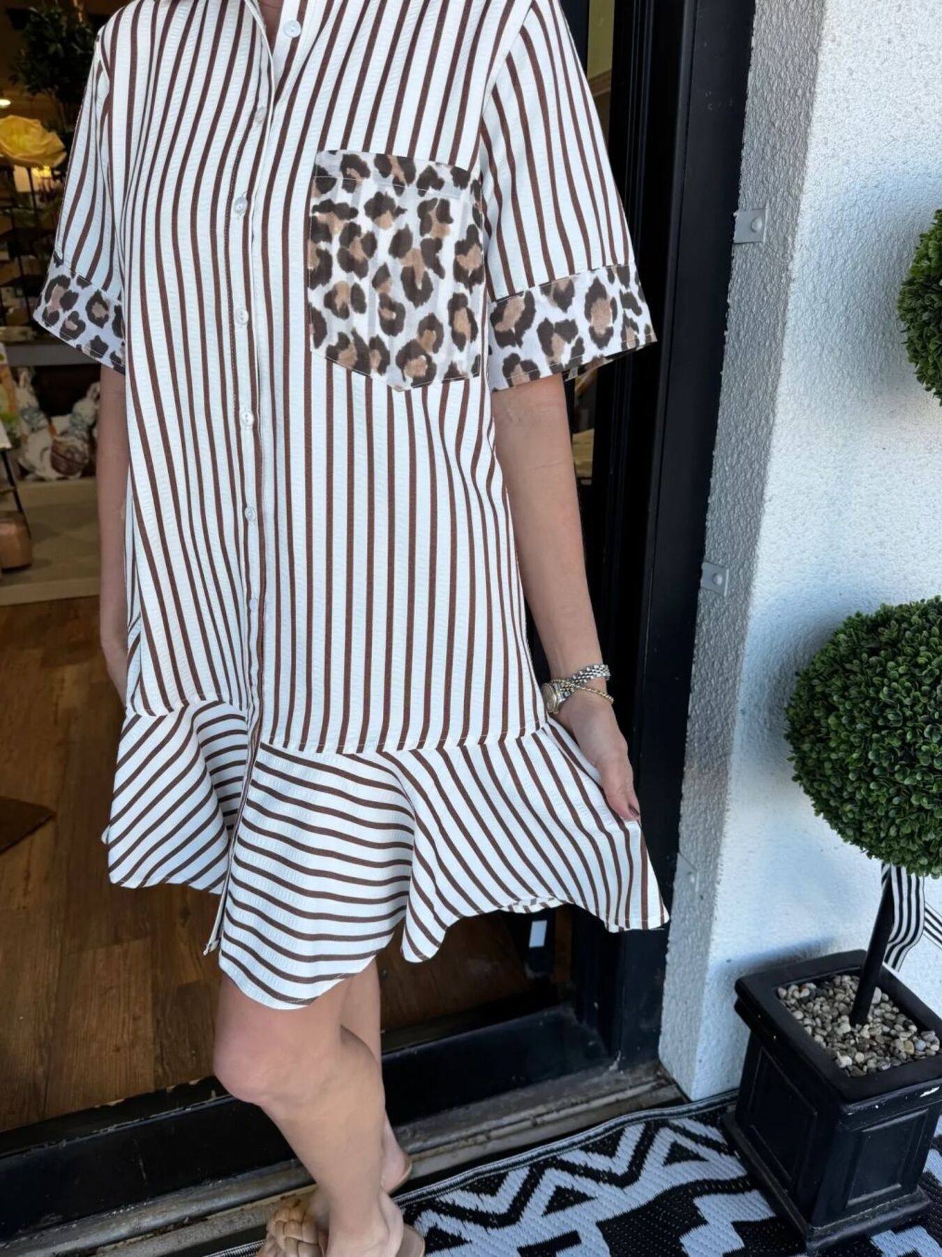 Striped Leopard Patch Shirt Dress
