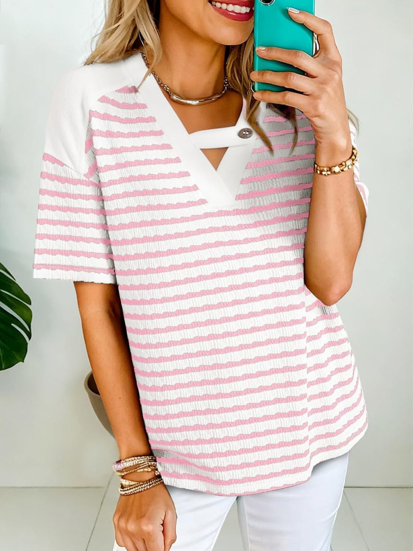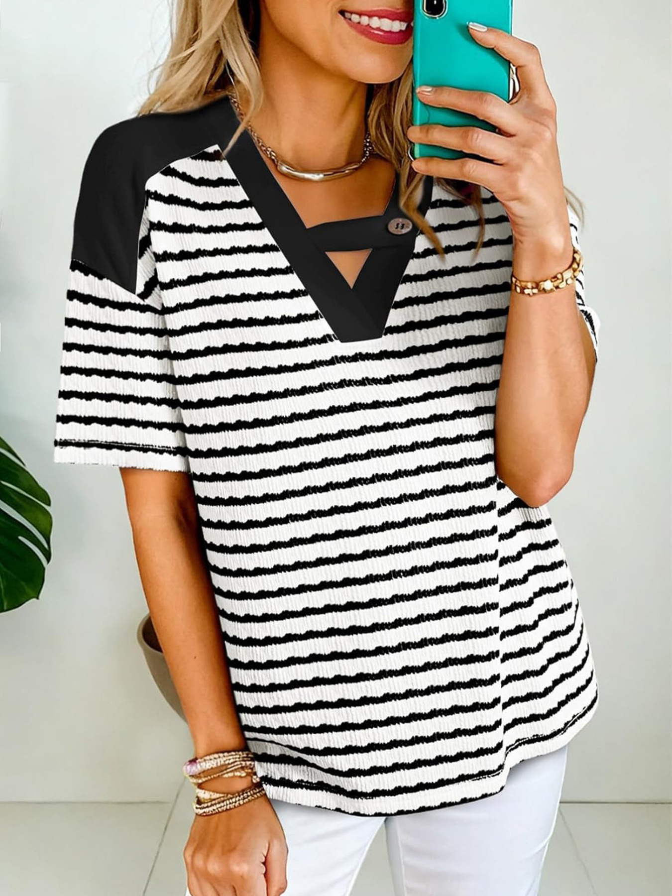 Striped Short Sleeve Casual T-Shirt