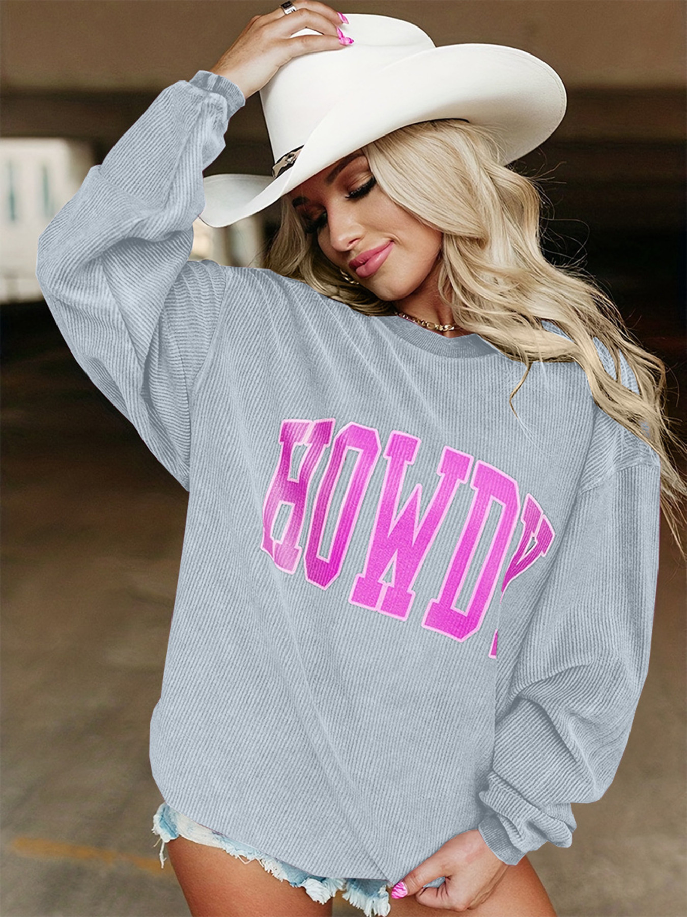 Full Size Howdy Round Neck Oversized Sweatshirt Plus Size