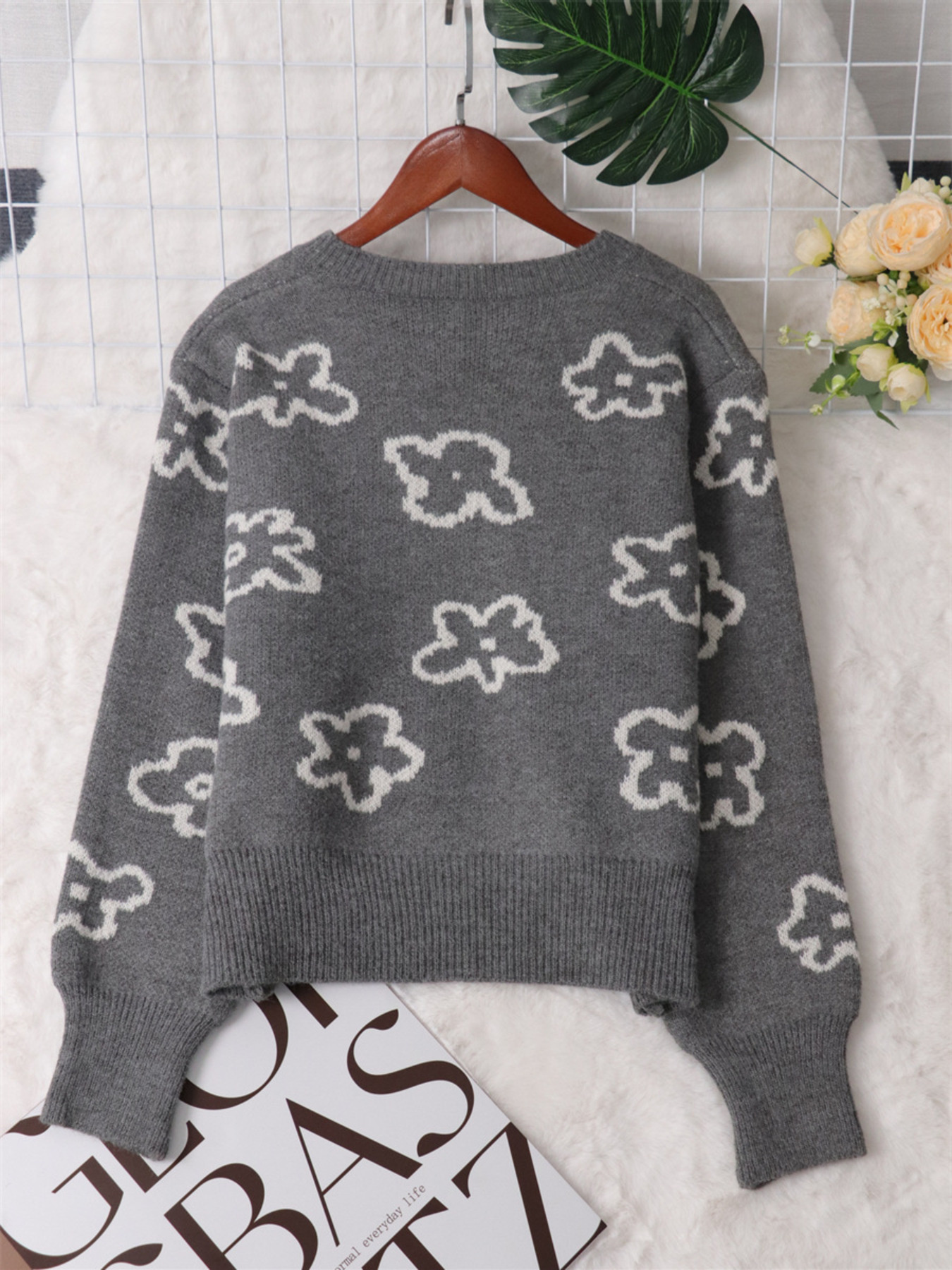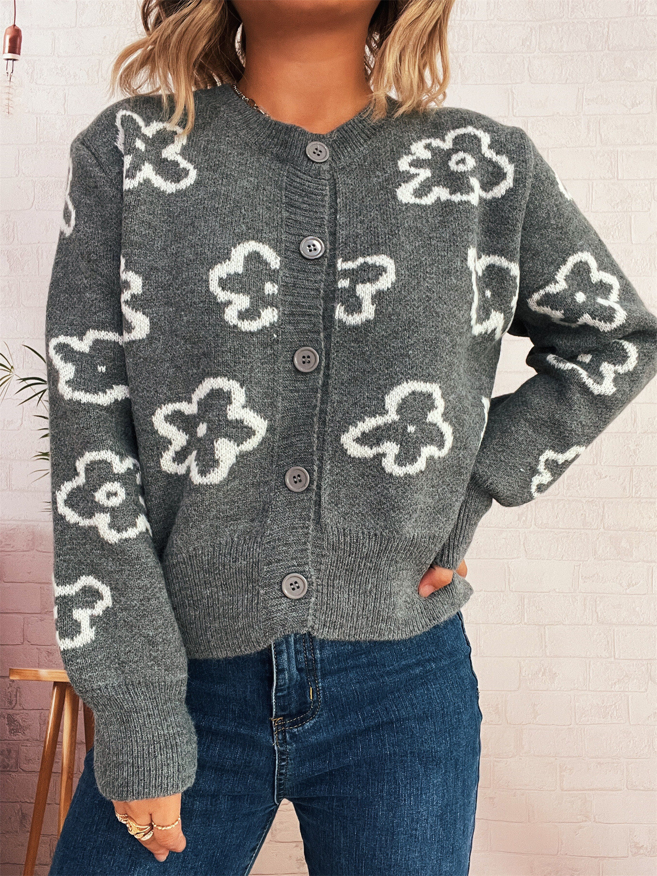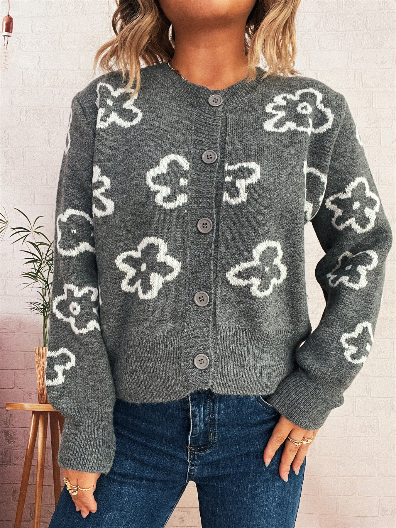 Floral Pattern Button-Up Cardigan