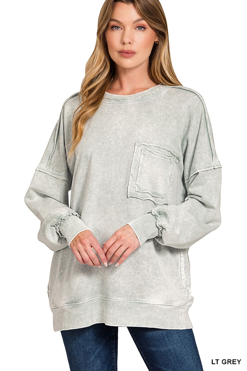 Zenana Halo Washed French Terry Exposed-Seam Sweatshirt