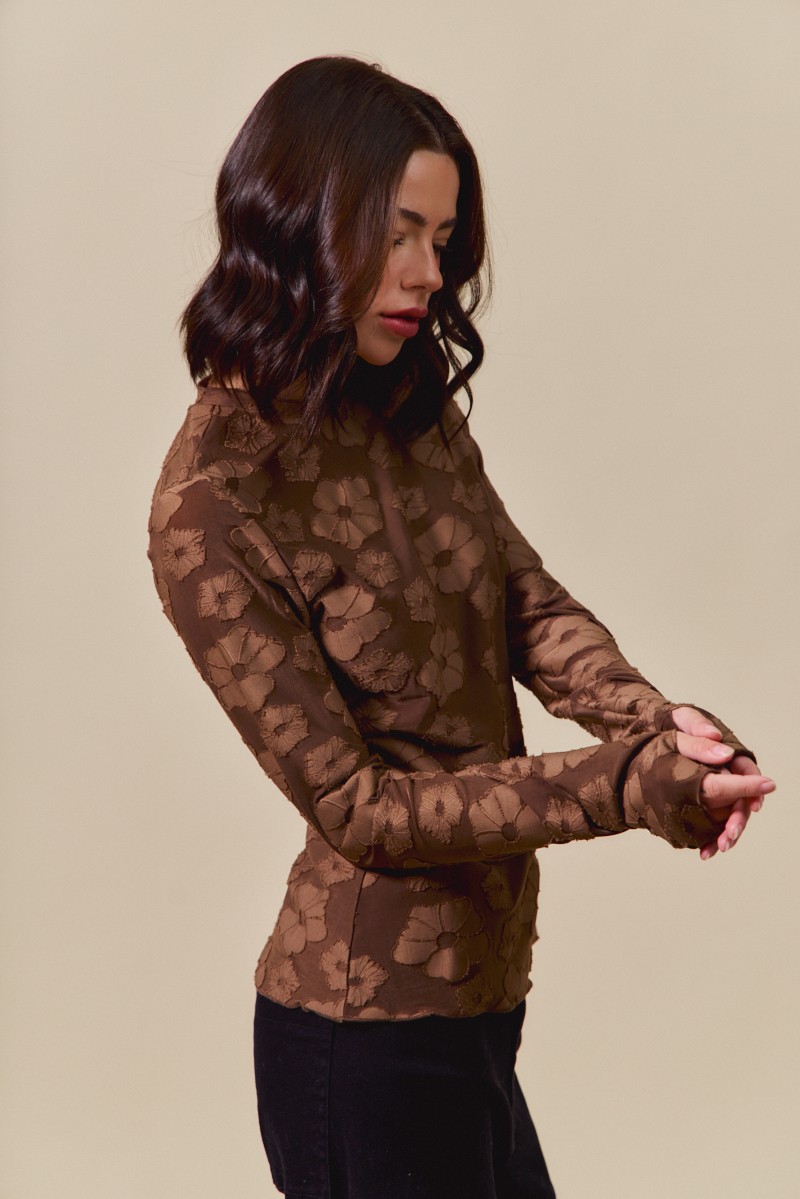 So Me Stretched Jacquard Casual Tops With Thumb Opening