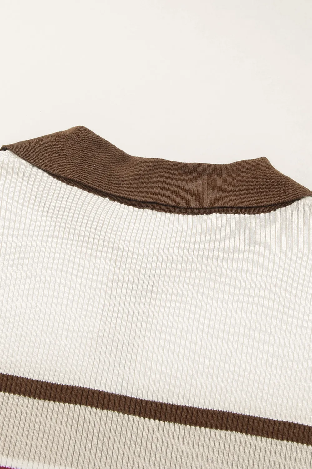 Half Button Contrast Stripe Long Sleeve Knit Top