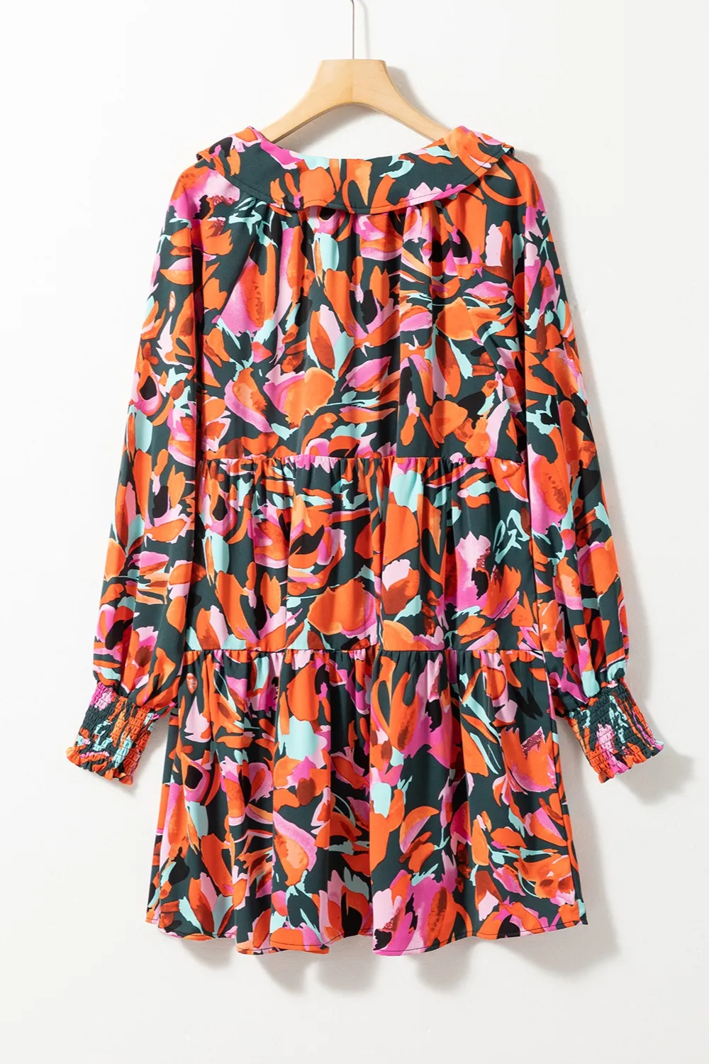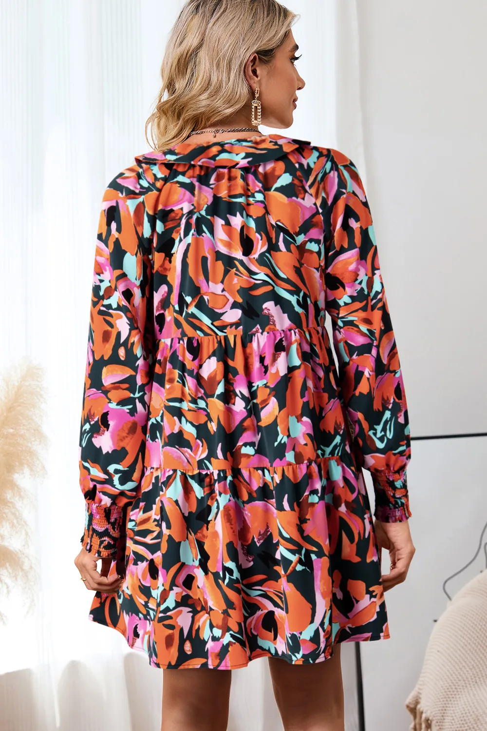 Printed Tie Neck Lantern Sleeve Mini Dress