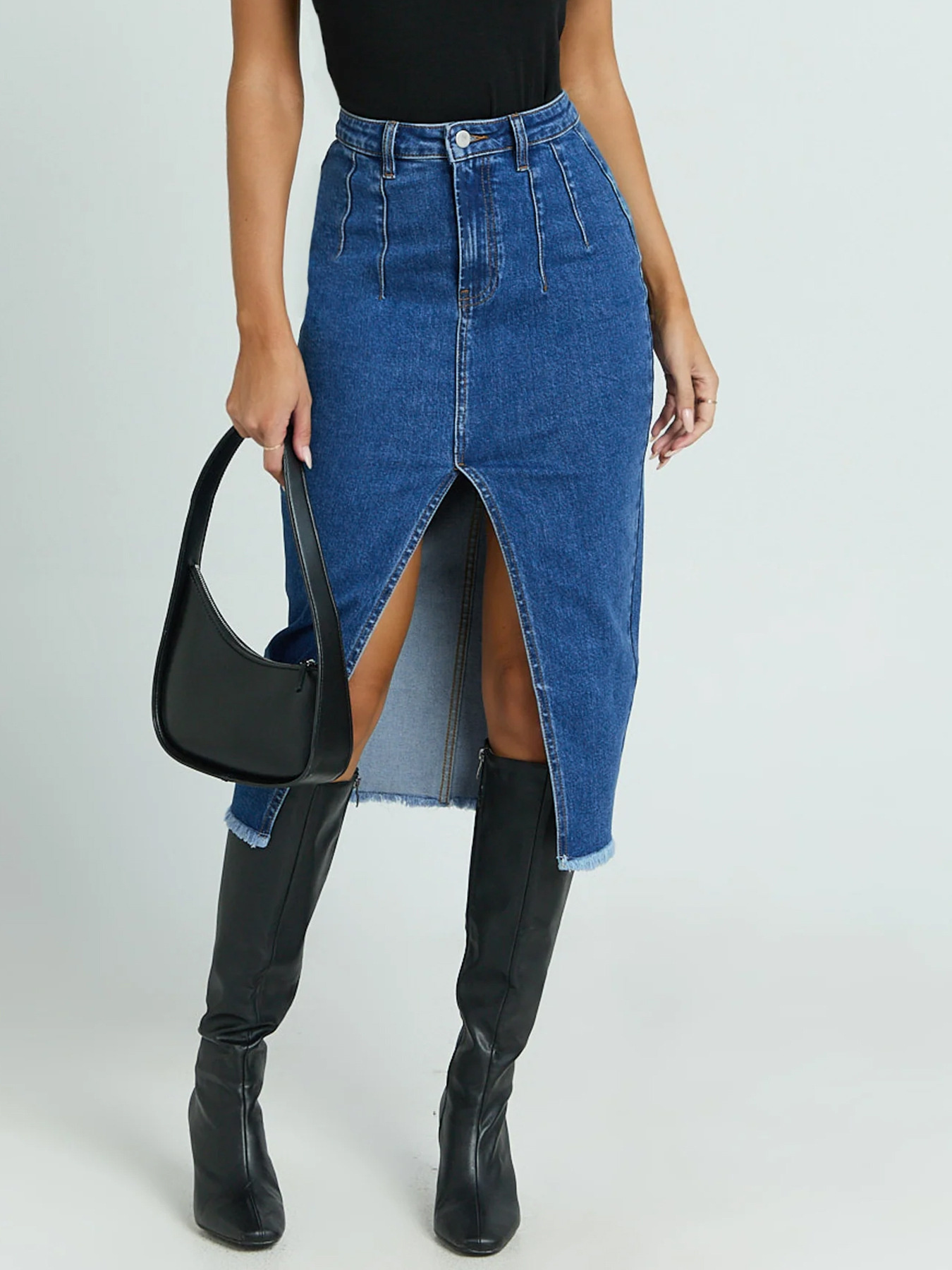High-Waisted Slit Denim Skirt