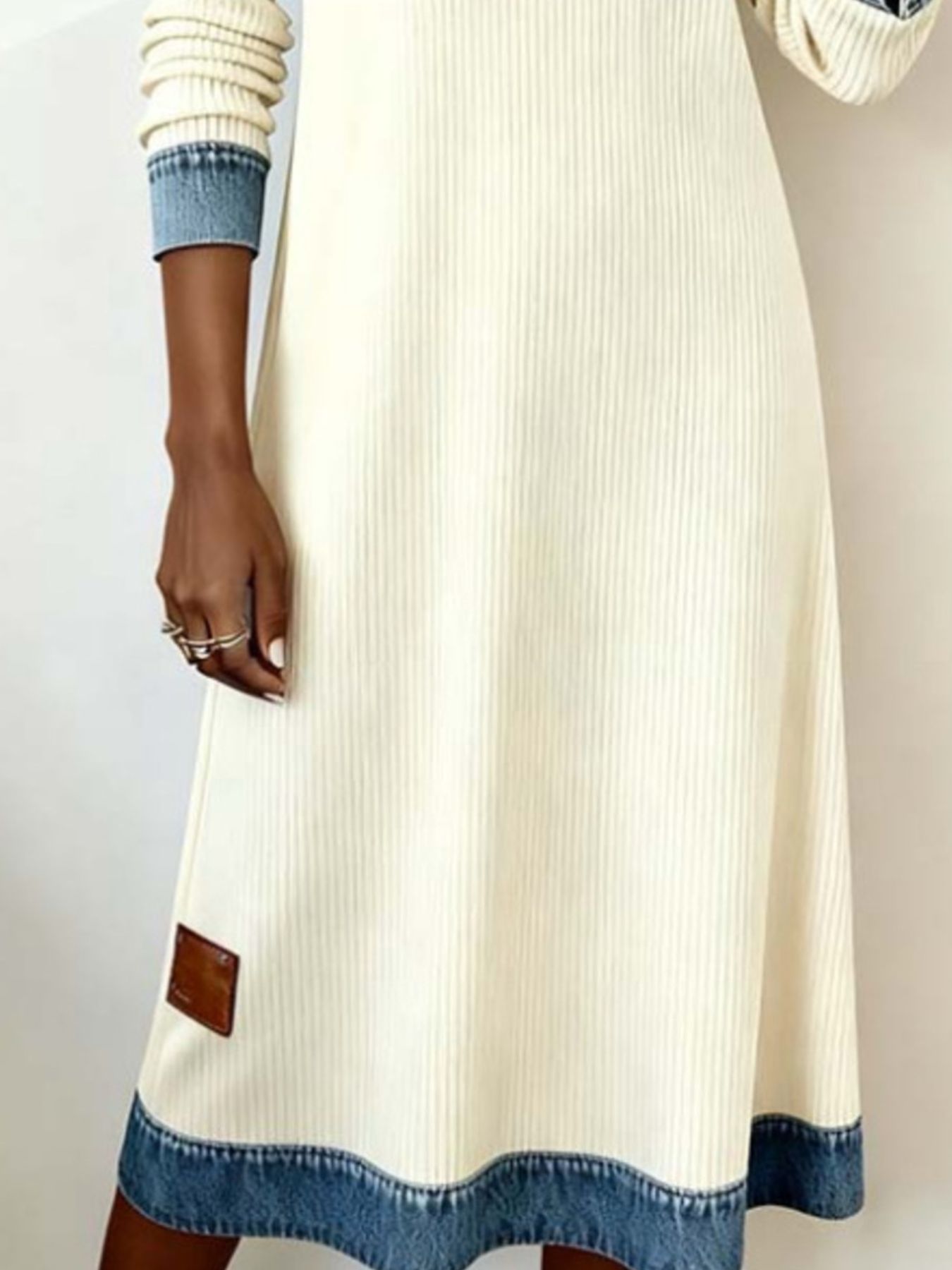 Full Size Denim Trim Ribbed Knit Midi Dress Plus Size